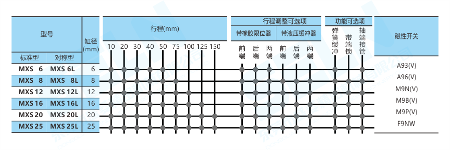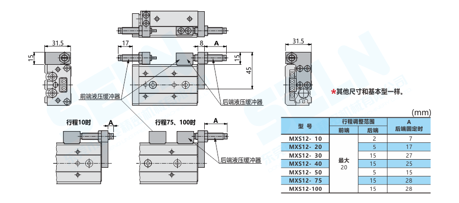 MXS12-□BS\BT\B:帶液壓緩沖