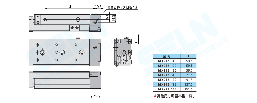 MXS12-□P:軸向接管